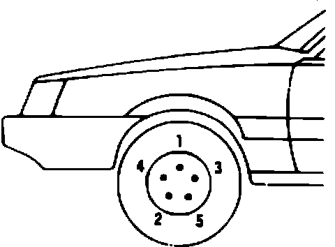 (a) Torque the lug nuts using a star pattern as shown in the figure to 35 ft.lbs. (47 N-m). Then retorque to 75 ft.lbs. (103 N-m).