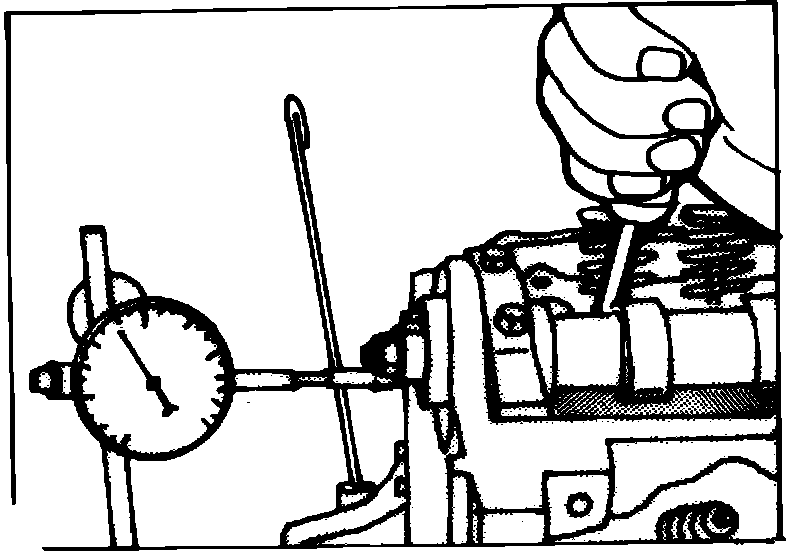 Fig. 3 Measuring camshaft thrust clearance on overhead cam engine. Typical: