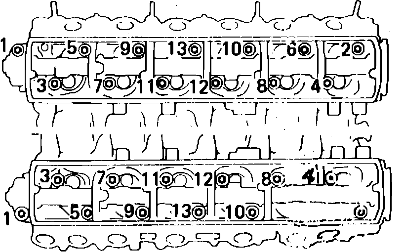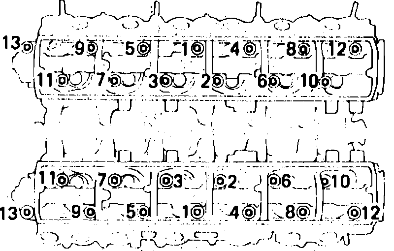 Fig. 39 Cylinder head bolt removal sequence. 5M-GE engine: