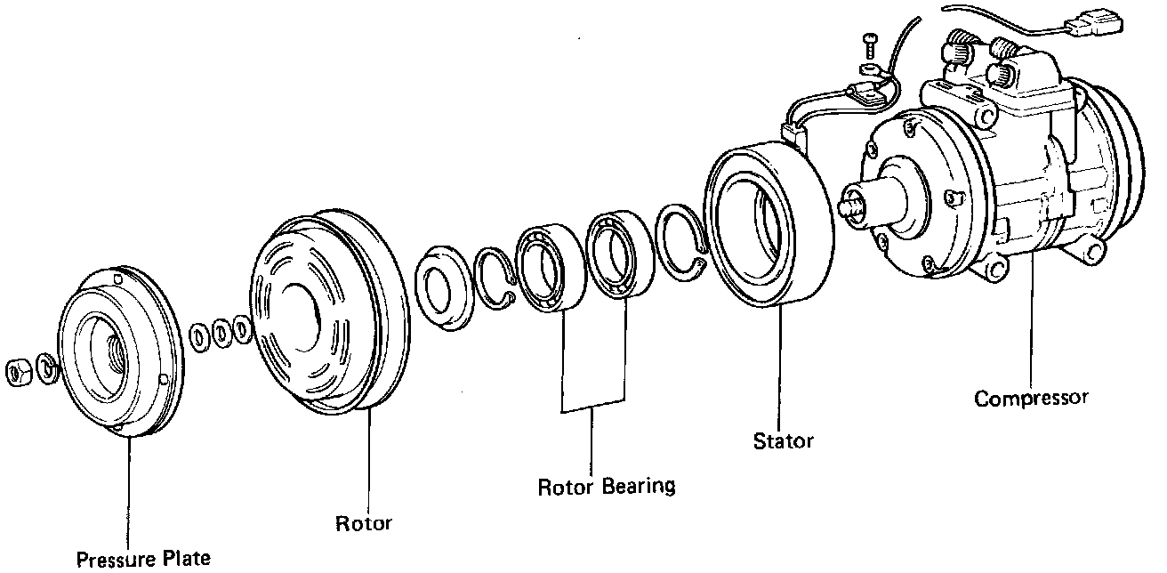 a. Adjust the clearance between the pressure plate and rotor by placing shims on the compressor shaft.