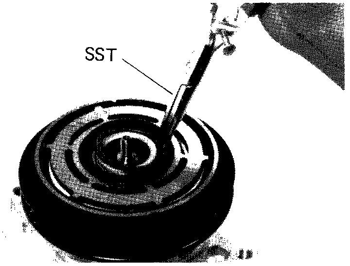 b. Using SST 07110-77011 press out the two bearings.