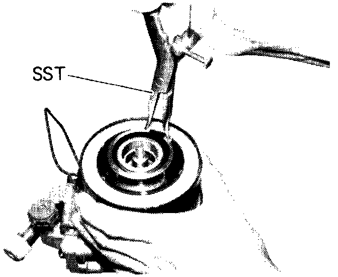 b. Using SST 07114-84020 remove the snap ring. Remove the stator.