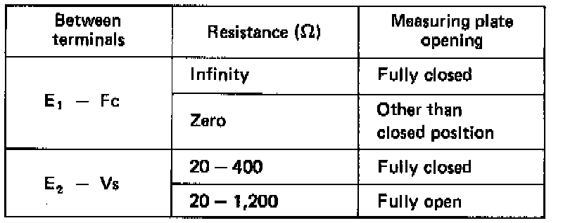 NOTE: Resistance between terminals E2 and Vs will change in a wave pattern as the measuring plate slowly opens.