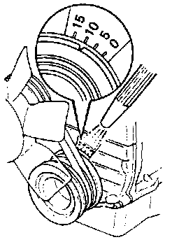 4. Using the timing light, slowly turn the distributor until the timing mark on the crank pulley is aligned with the 10° BTDC mark. Torque distributor bolt to 16 - 21 Nm (12 - 15 ft.lbs).