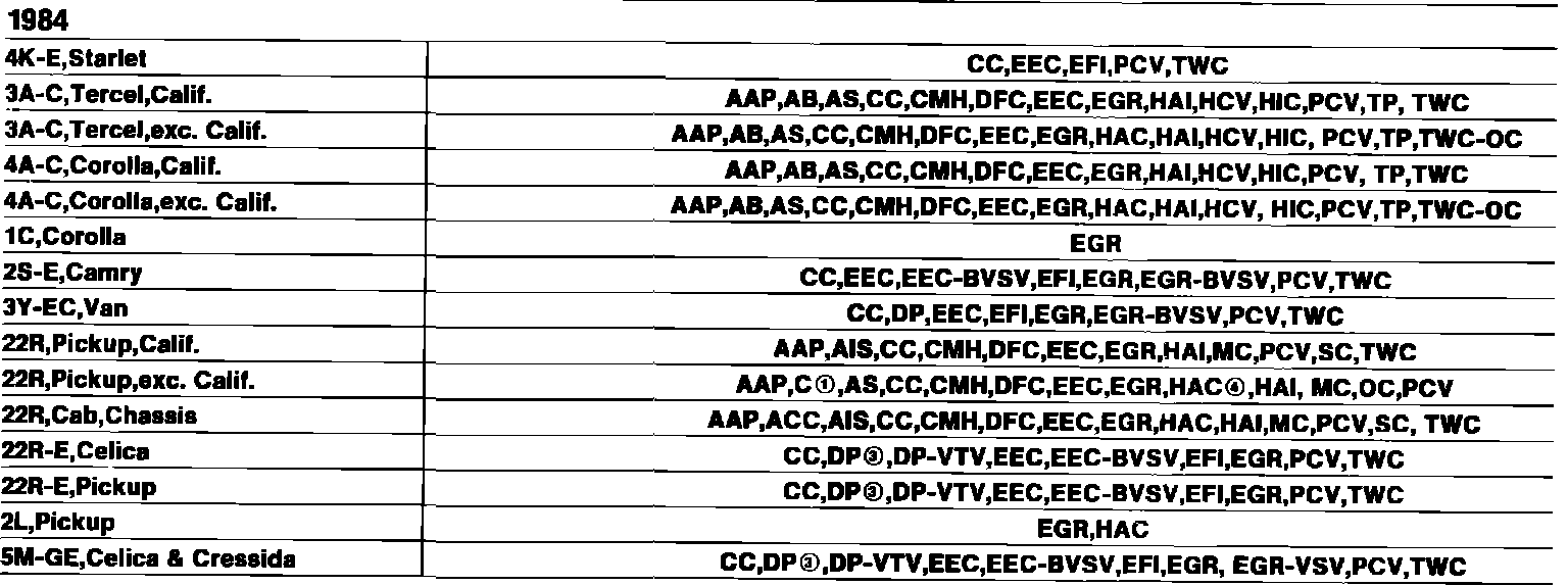 Corolla/FX L4-1587cc 4A SOHC