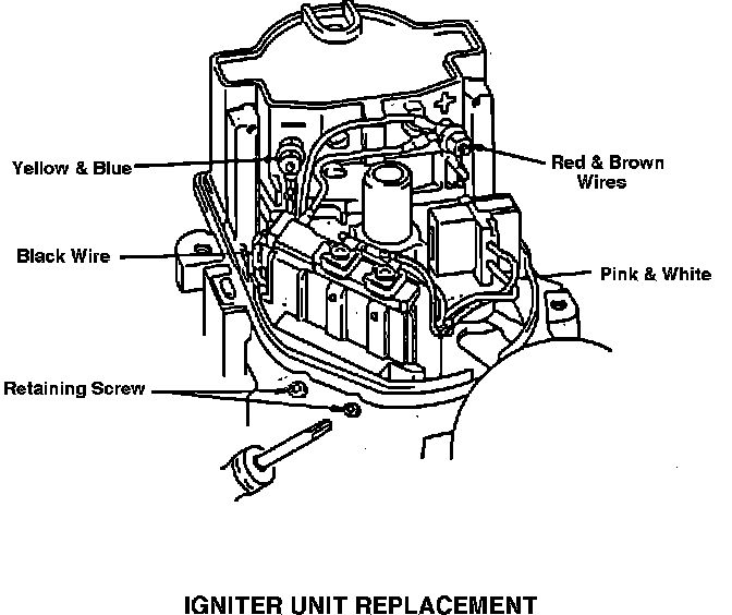 5) Remove and discard the two retaining screws and lift out the igniter unit.