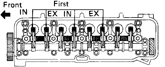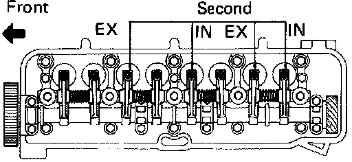 ^ Check that the rocker arms on No.1 cylinder are loose and the rockers on No.4 are tight.