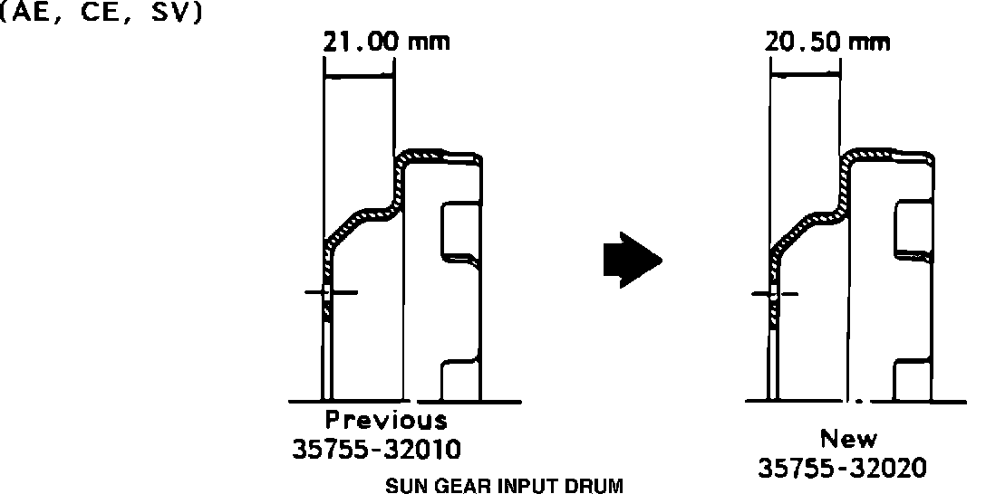 For parts standardization among the A130L, A131L and A140E front wheel drive automatic transmissions, the following parts have been modified as shown below..
