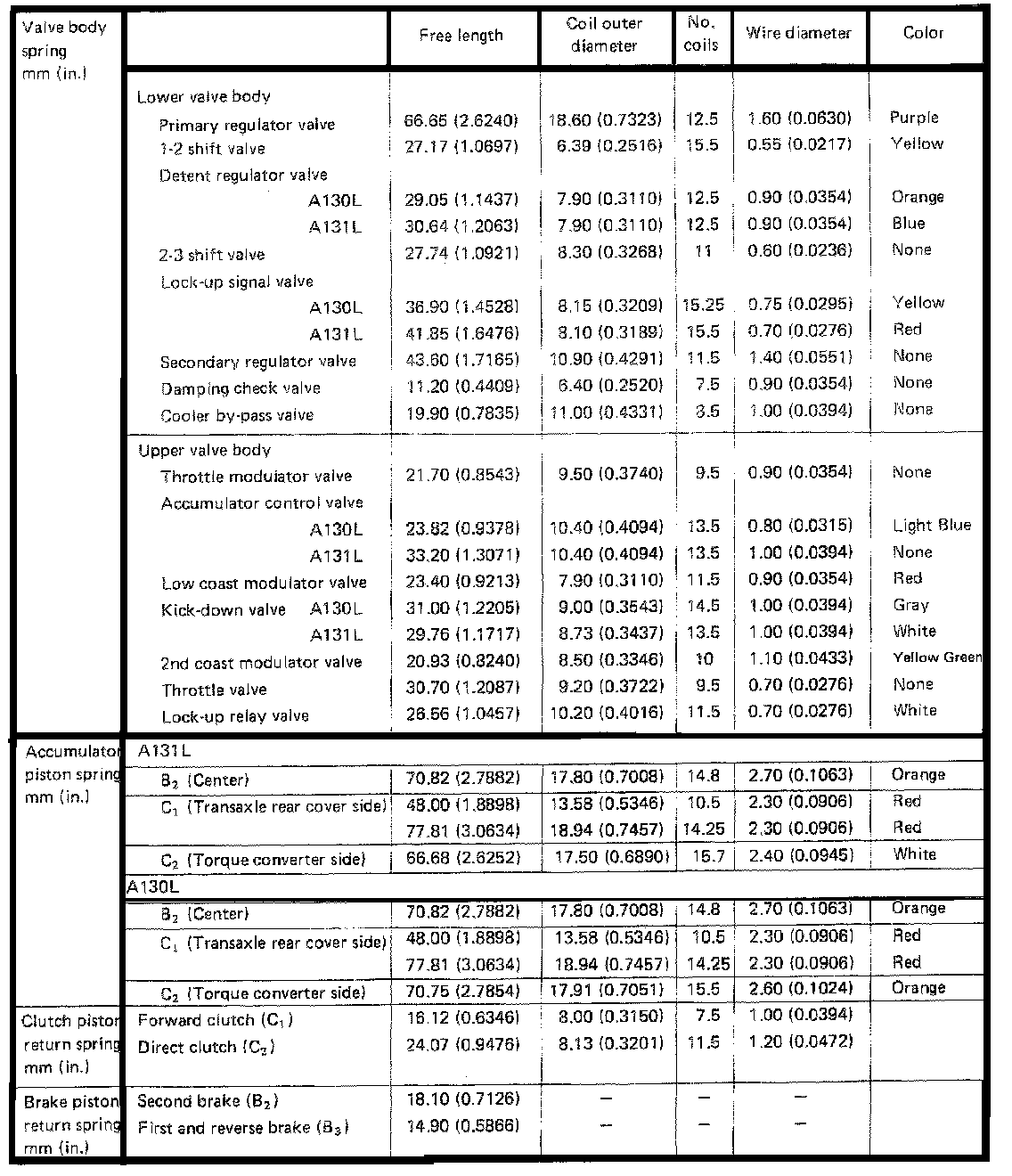 A130L 3-spd A/T, Valve Body/Accumulator Diameter: