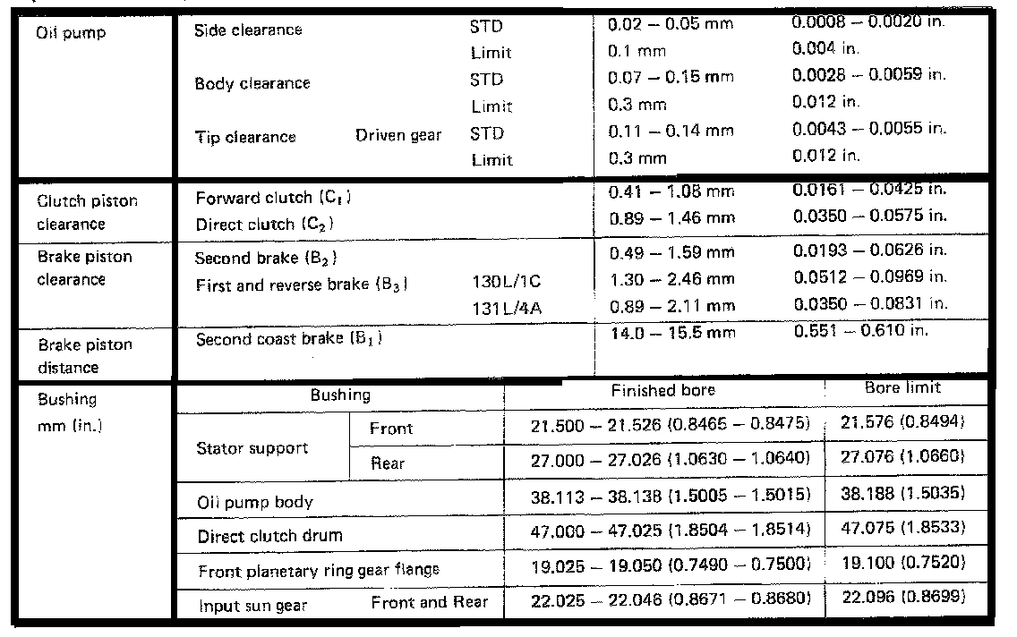 A130L 3-spd A/T, Oil Pump/Clutch Clearance: