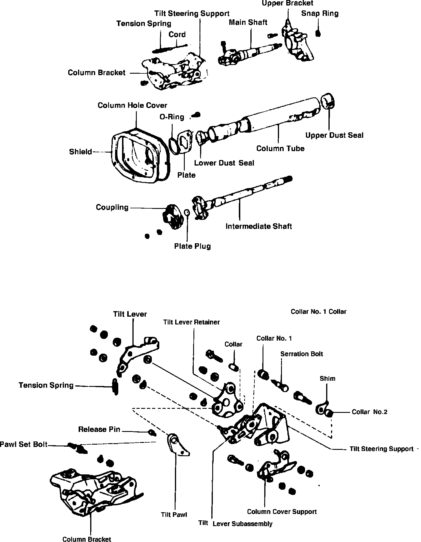 Fig. 9 Exploded view of steering column. 1985-88 Cressida:
