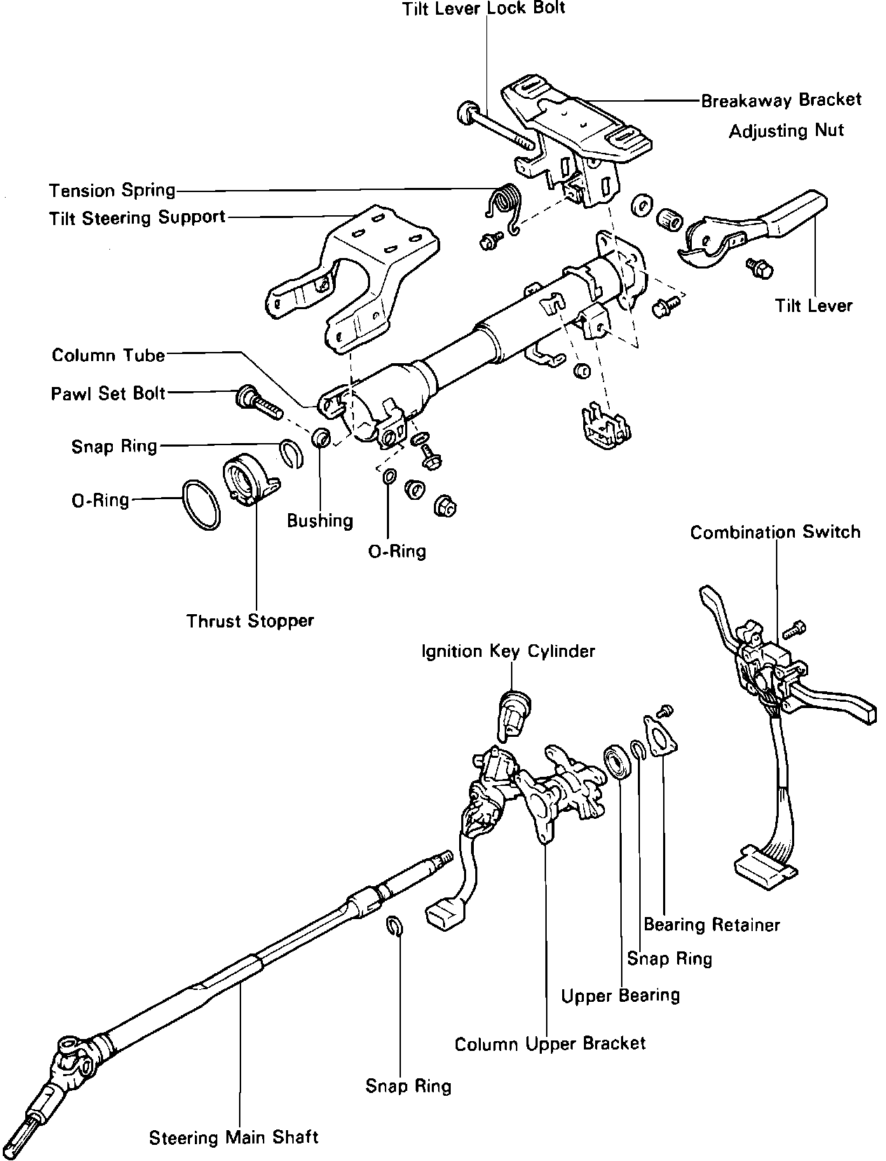 Fig. 10 Exploded view of steering column. 1985-88 MR2: