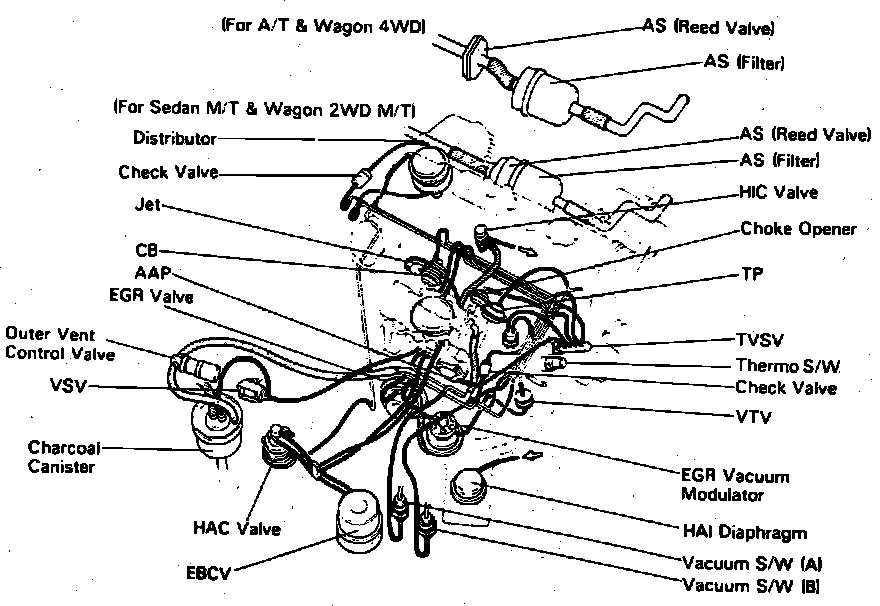Applicable to: 1984-86 Except California Models w/3A-C Engine
