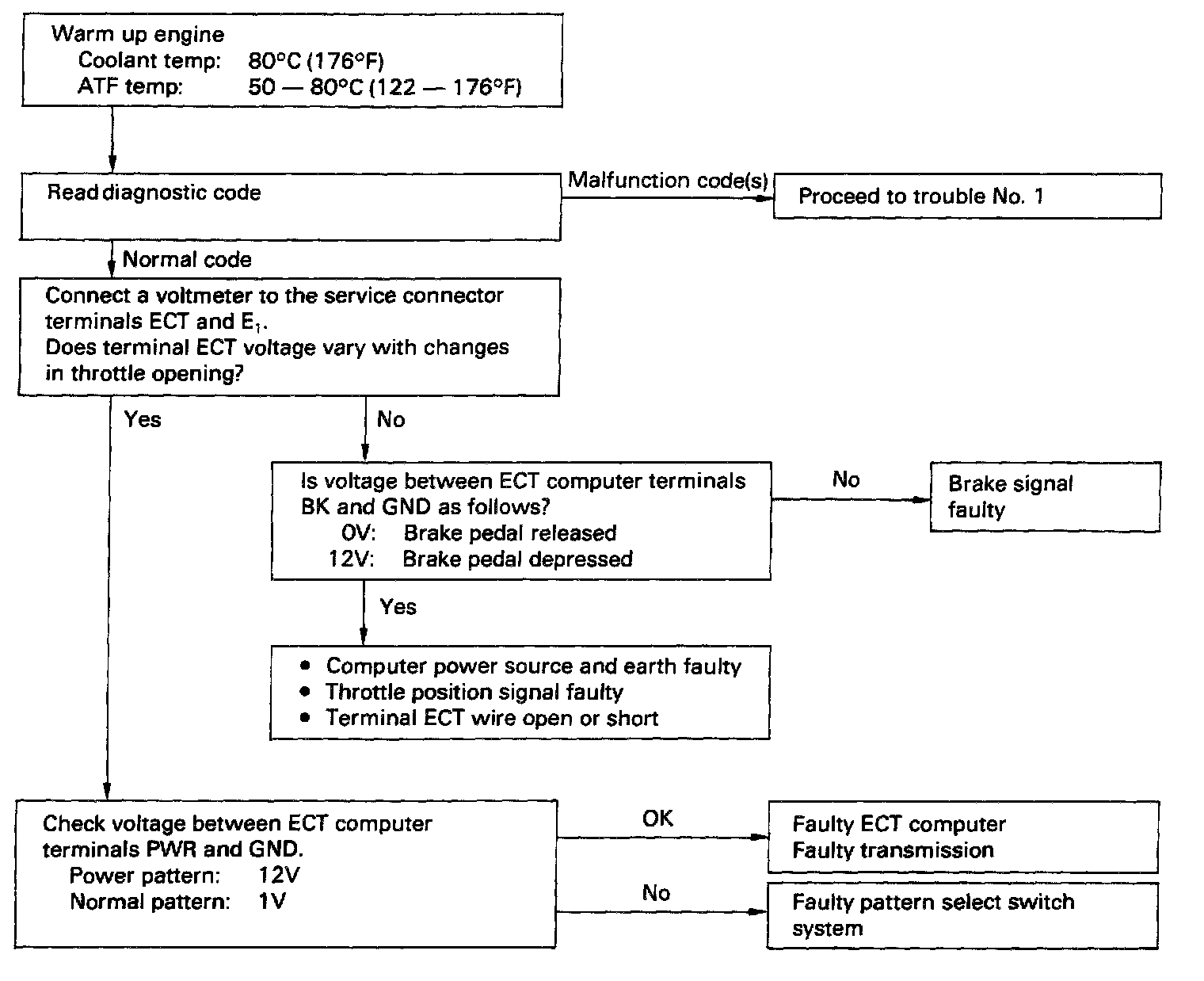 Trouble No.4 No up-shift to overdrive (After warm-up)