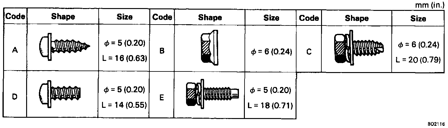 NOTE: Screw sizes in the illustration as indicated by following the code for removal and installation of safety pad.