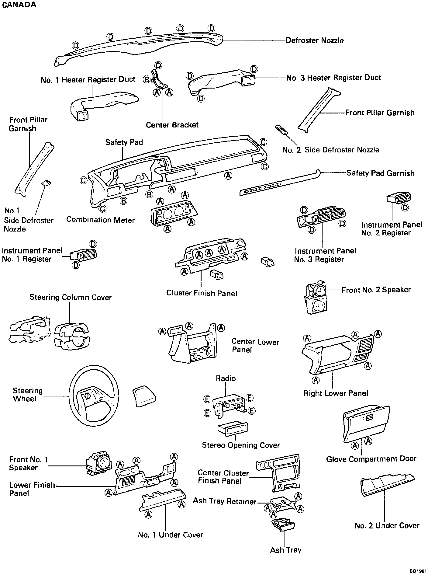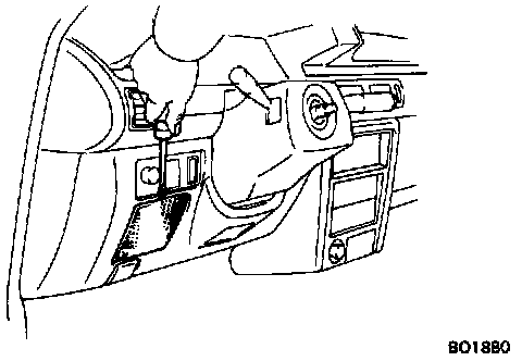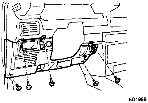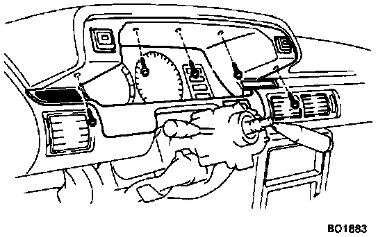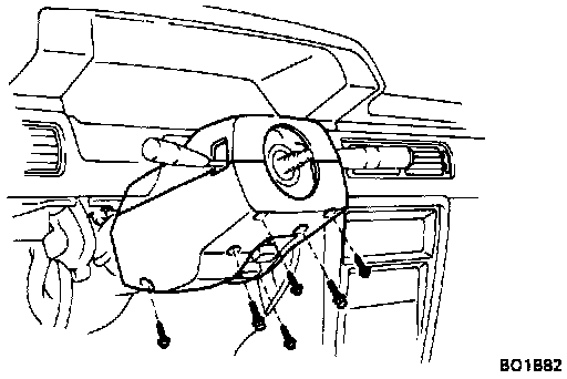 6. Remove steering column cover. Remove the four screws, the two bolts, and the cover.