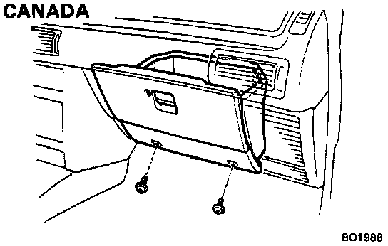 10. Remove the two screws and the glove compartment door.