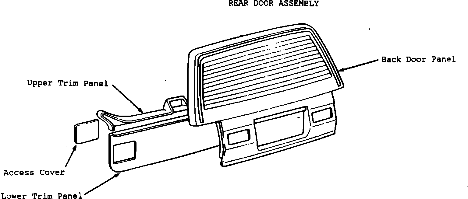 ^ Remove the four attaching nuts for each combination lamp housing and remove both lamp housings from the outside of the back door panel. (See the attached illustration of the rear door assembly).