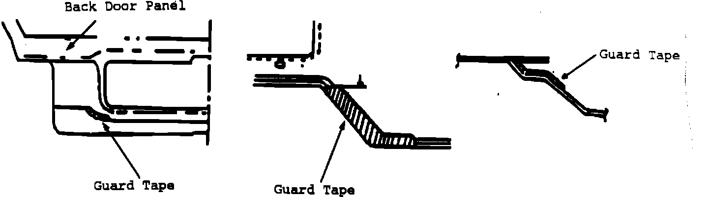 ^ Install one left hand and one right hand guard tape to the outside of the back door as shown in the illustration below.