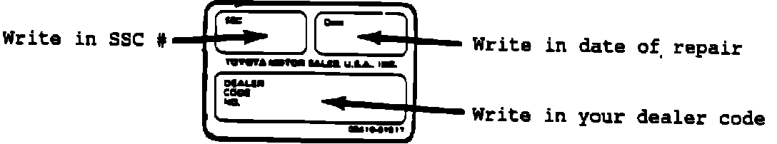 After completing repair and before returning the vehicle to a customer, a SSC completion label must be affixed to the engine cowl next to the factory I.D. plate.