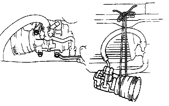 Note: Put aside the compressor, and suspend it to the radiator support with a string.