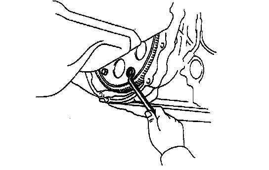 (b) Hold the crankshaft pulley bolt with a wrench, and remove the six bolts.