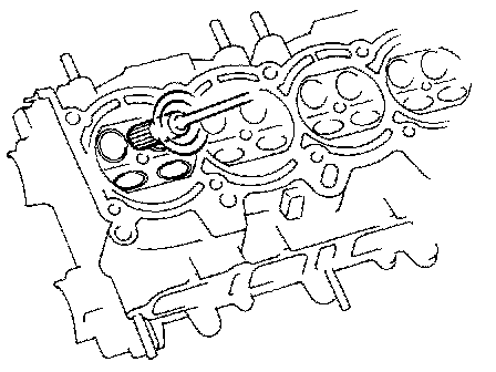 Using a valve guide bushing brush and solvent, clean all the guide bushings.