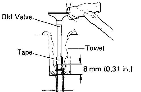 (a) Insert an old valve wrapped with tape into the guide bushing and break off the guide bushing by hitting it with a hammer.