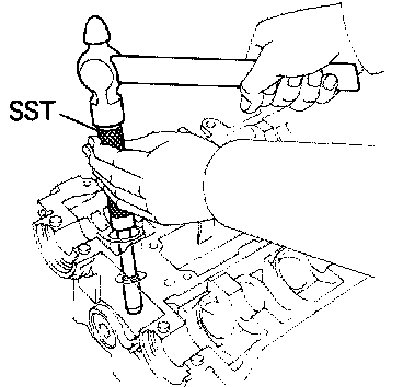 (c) Using SST and a hammer, tap out the guide bushing. SST 09201-70010