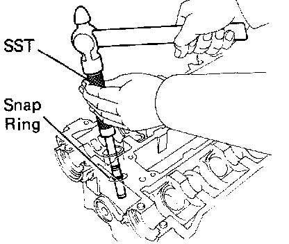 (g) Using SST and a hammer, tap in a new guide bushing until the snap ring makes contact with the cylinder head. 551 09201-70010
