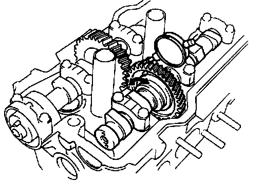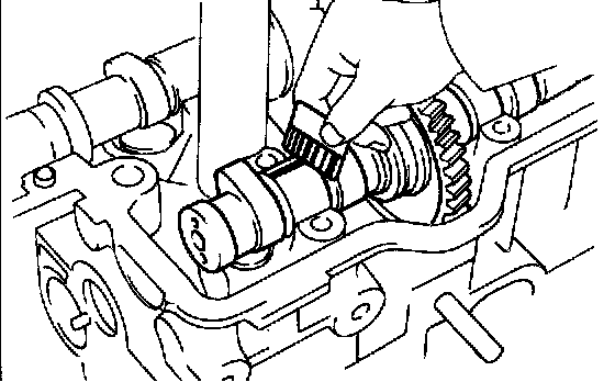 NOTE: Since the thrust clearance of the camshaft is small, the camshaft must be held level while it is being installed. If the camshaft is not kept level, the portion of the cylinder head receiving the shaft thrust may crack or be damaged, causing the camshaft to seize or break. To avoid this damage, the following steps should be carried out.