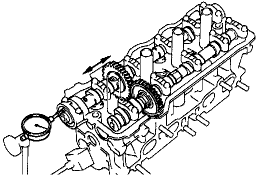 (b) Using a dial indicator, measure the thrust clearance while moving the camshaft back and forth.
