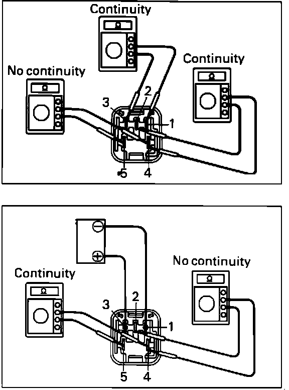 1. Check that there is continuity between terminals 1 and 3 and between terminals 2 and 4.