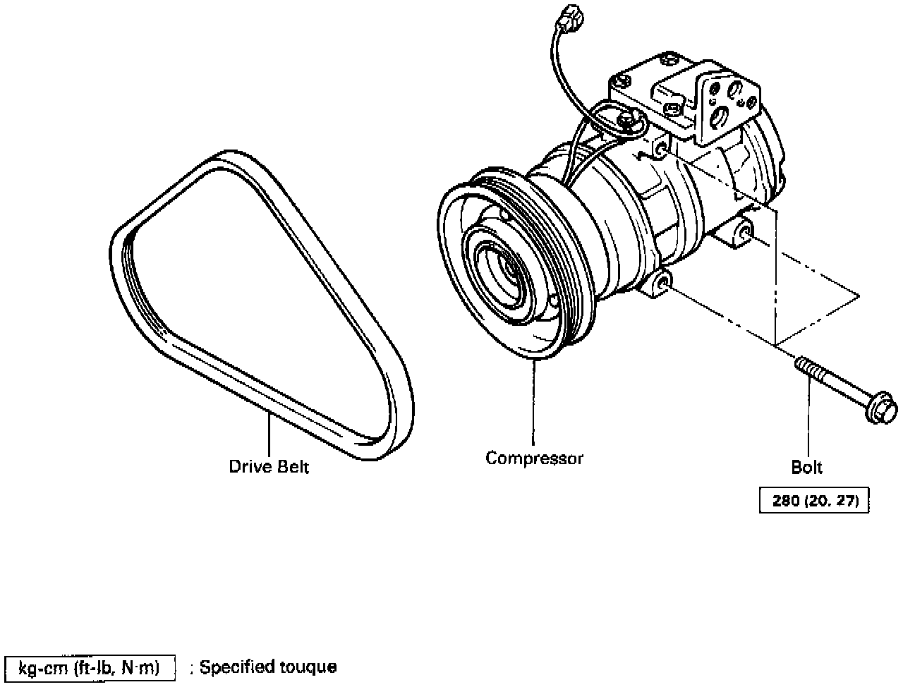 b. Tighten the belt with adjusting bolts. Using a belt tension gauge, check the drive belt tension.