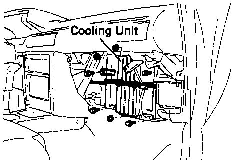 8. Remove three nuts and four bolts and remove cooling unit.