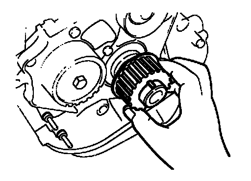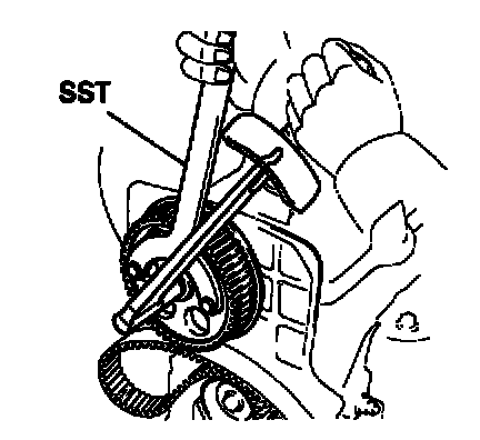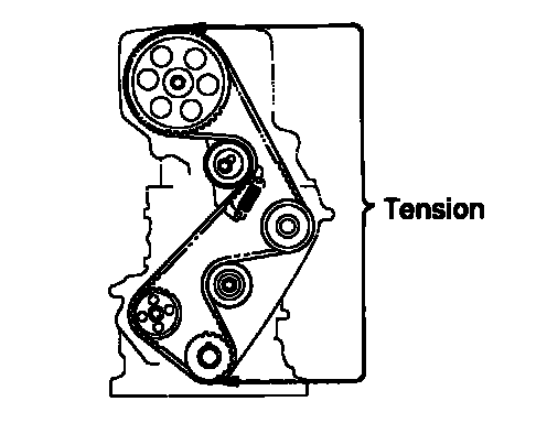 Install the timing belt, insure that there is tension between the crankshaft timing pulley, water pump pulley and camshaft timing pulley.