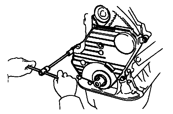 (c) Pry the pulley toward the left as far as it will go and tighten the bolt.