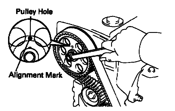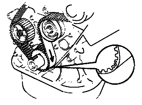 NOTE: If reusing the timing belt, draw a direction arrow the timing belt (in direction of engine revolution). and place the matchmarks on the timing belt and crankshaft timing pulley.