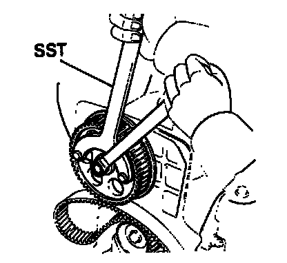 NOTE: If reusing the timing belt, place the match marks on the timing belt and camshaft timing pulley.