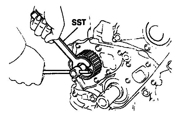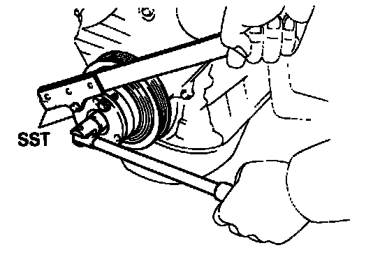 (b) Using SST. remove the pulley. SST 09213-60017