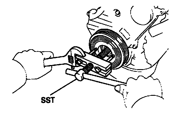 Using SST, remove the bolt, plate washer and pulley. SST 09278-54012