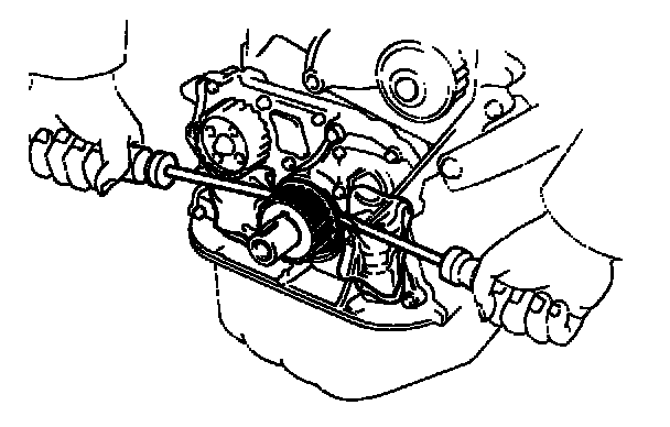 If the pulley cannot be removed by hand, use two screwdrivers.