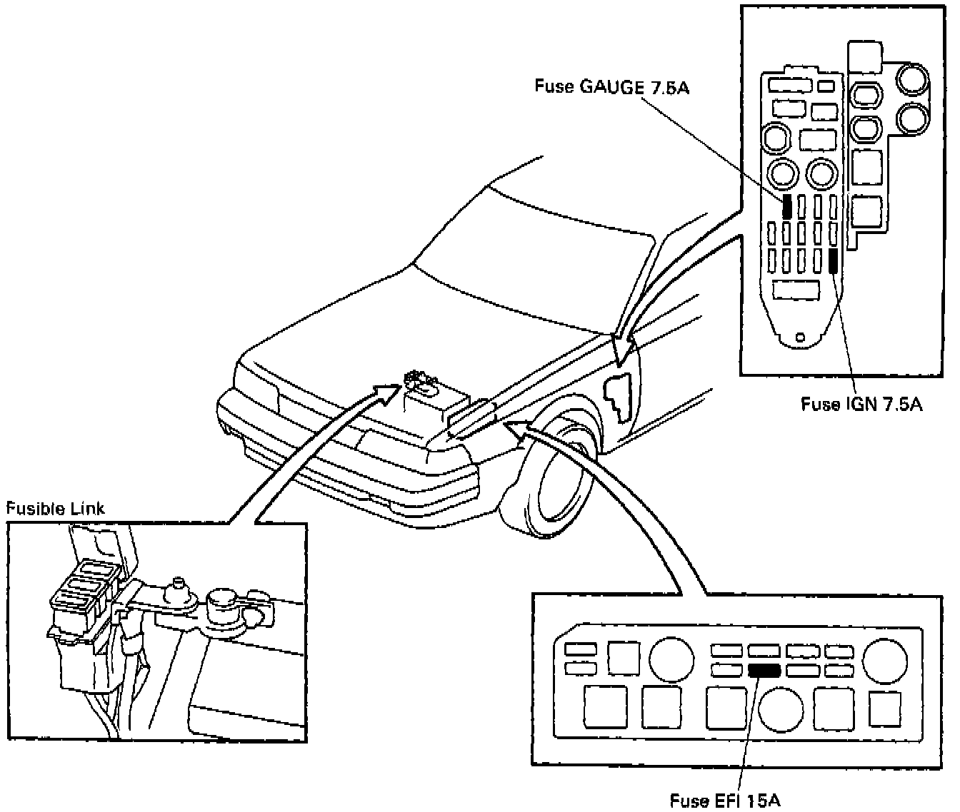 Before beginning inspection, it is best to first make a simple check of the fuses, fusible links and the codition of the connectors.