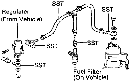 (d) Connect the fuel return hose to the pressure regulator with SST (union), new gaskets and union bolt.