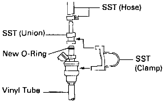 NOTE: Install the suitable vinyl hose onto the injector to prevent gasoline from splashing out.