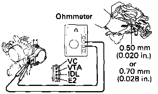 (b) Insert a thickness gauge between the throttle stop screw and stop lever.