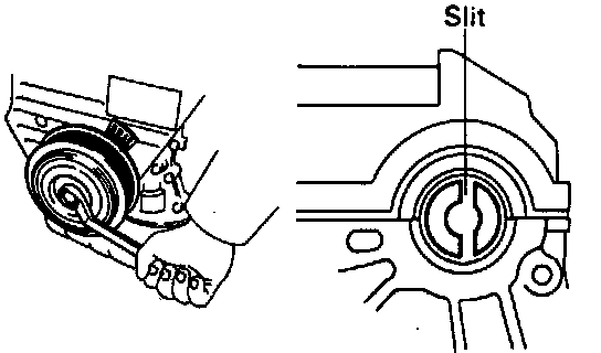 - Turn the crankshaft clockwise, and position the slit of the intake camshaft as shown.