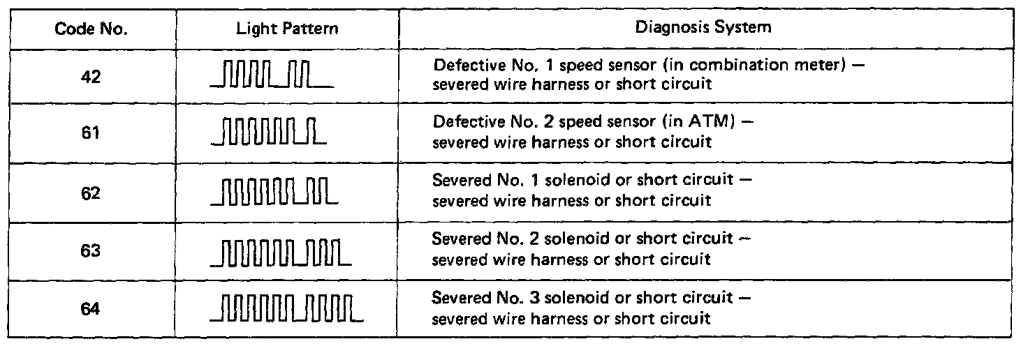 NOTE: Warning and diagnostic code can be read only when the overdrive switch is ON. If OFF the overdrive light will light continuously and will not blink.