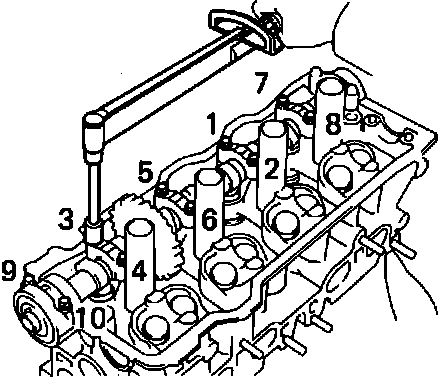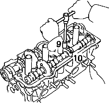 Fig. 6 Intake Camshaft Bearing Cap Bolt 9 & 10 Removal. 3S-FE: