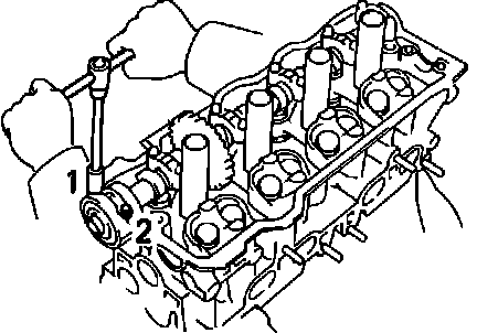 Fig. 1 Exhaust Camshaft Bearing Cap Bolts 1 & 2 Removal. 3S-FE: